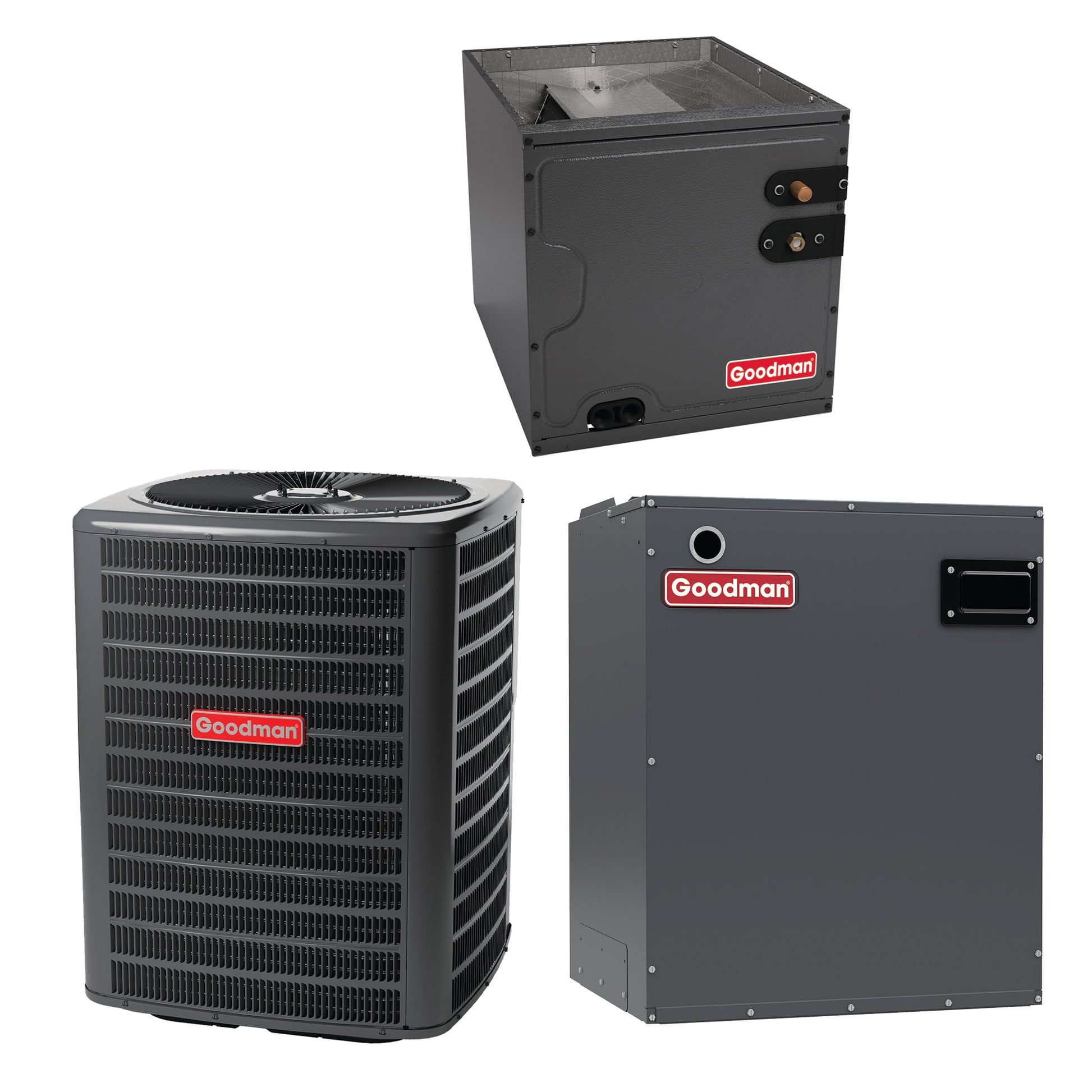 The Goodman CAPF, CAUF, CHPF, CAPT and CSCF Evaporator Coils are designed for use with Goodman Gas Furnaces, Split System Air Conditioners and Heat Pumps, as well as modular, two-piece blowers. Each cased coil has a quality, galvanized-steel cabinet.